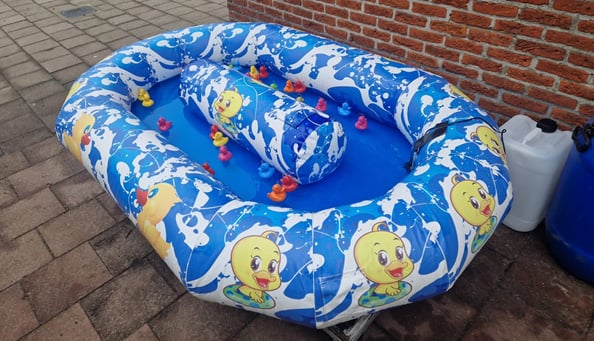 Bij de huur van dit springkasteel vragen we om het water of de balletjes eruit te halen en de balletjes terug in de zakken te doen, anders is er een meerkost.